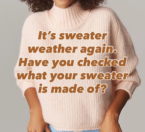 I just pulled out my sweaters and checked. Half of them are made of polyeter. Yikes! Time to get some cotton or wool ones to replace the synthetics.