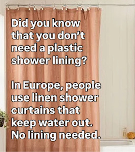 Once I switched to a linen shower curtain, I didn’t need the plastic shower liner any more. No more mold and mildew at the bottom of the plastic liner to scrub away. That was so gross!