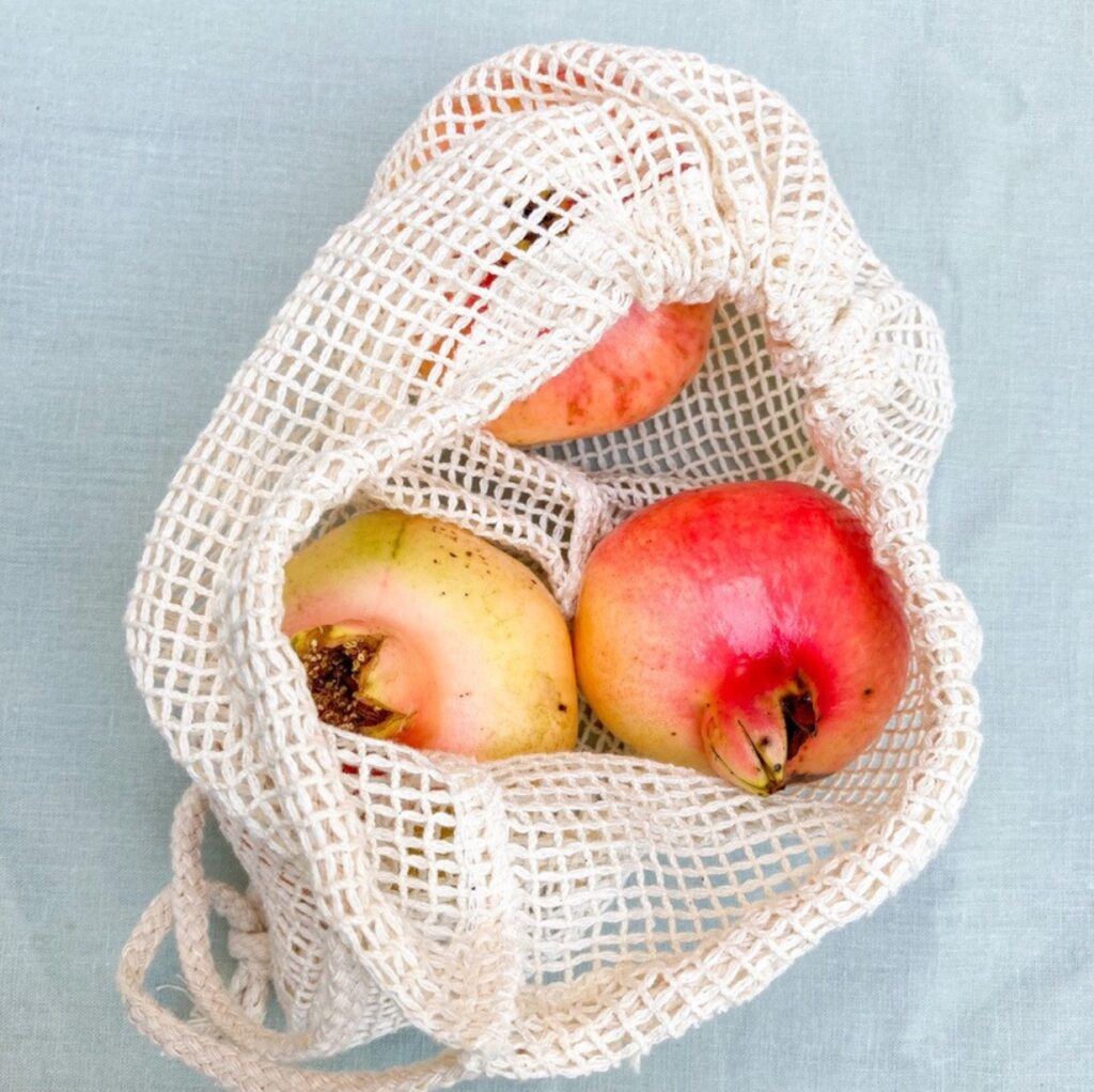 Replace Plastic provides 100% organic cotton bags with water-based ink that retail stores sell for $1. Mesh produce bags are 50 cents.
